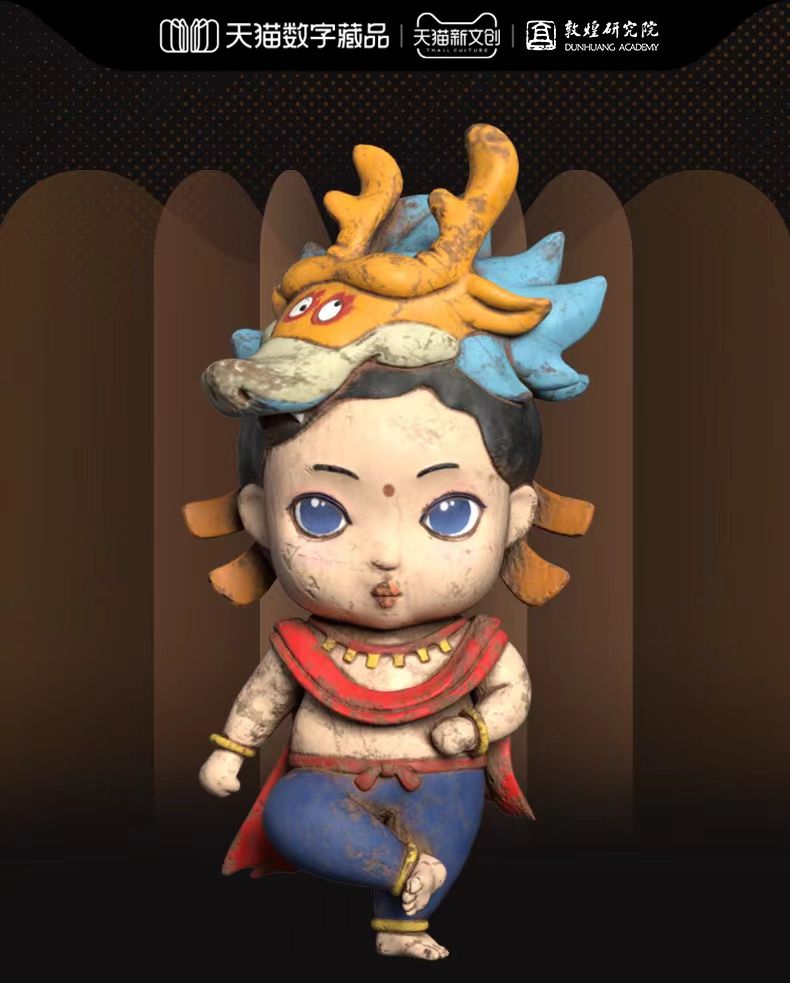 与原先“简单粗暴”直接发售文物虚拟影像不同,这一波数字藏品有了明显“二次创作”的痕迹。刘洁此次收到的“敦煌天龙八部数字藏品”并未直接使用文物形象,而是一个戴着龙头帽、身着敦煌壁画典型服装的玩偶形象,玩偶身体还做出了莫高窟雕塑经风雨侵蚀后的效果。不过她也发现,尽管有所创新,但将文物元素与卡通化形象结合,成了这一波数字藏品的主要形象之一。