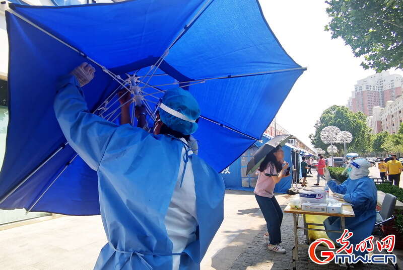同时,北京各区县、街道也纷纷采取相关措施,第一时间了解核酸检测点需求,通过架设遮阳伞、摆设冰块等设备设施配备,为防疫一线医护人员和工作人员“送清凉”。同时,缩减工作人员轮换时间等方式保障休息,让核酸检测既有防护力度,也有关怀温度。