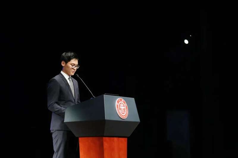 翟裕舟在学院新生开学典礼上代表老生发言