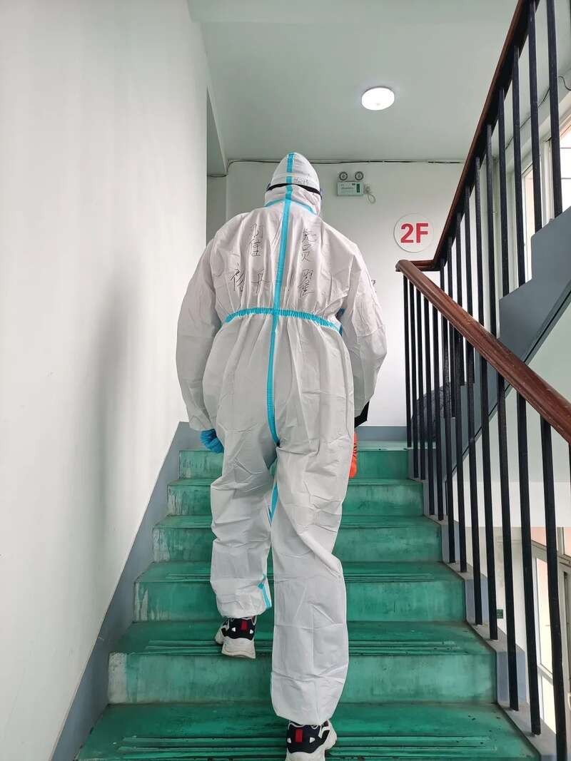 翟裕舟疫情期间在寝室做楼栋消杀