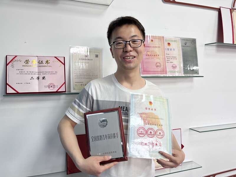 短短几年时间,万鑫兴这个90后青年人,凭着实干与奋斗,成为锐意创新的模范。他和团队研发形成的5项科技成果获得了国家知识产权局专利局授权的实用新型专利,并三次获得“全国铁路青年科技创新奖”,他负责的科创兴路工作室还被命名为全国铁路青仝创新工作室。
