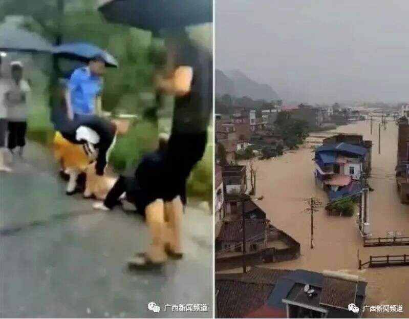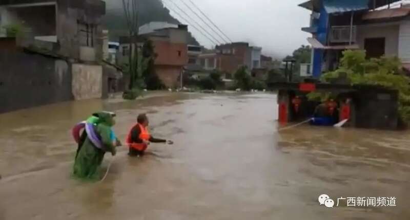 5月27日上午,一场洪水侵袭了广西来宾市忻城县大塘镇,有3名小孩被洪水冲走,上百村民自发组织和消防、公安等部门一起救援,将落水者救起。遗憾的是,有两名落水者经抢救无效身亡。