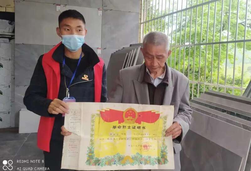 5月18日下午2:10,当天下着蒙蒙的细雨。明城下班后就一个人骑着电瓶车赶往安岳县石桥街道办滴水村,找到了村干部谢晓坤,在和谢晓坤核对信息确认后就赶紧往烈士家赶。