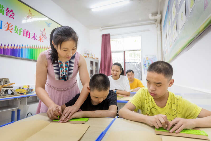 贾君婷仙还把兄弟俩带去萍乡市特殊教育学校就读,圆他们的上学梦。在她的呼吁下,2019年9月,学校开创性地成立了首个启明班。这个班里只有3名视力障碍的孩子,贾君婷仙仍一门课不落地开设了盲文、音乐、手工、计算机、思想品德等课程。针对不同孩子情况,一人一案,因材施教。