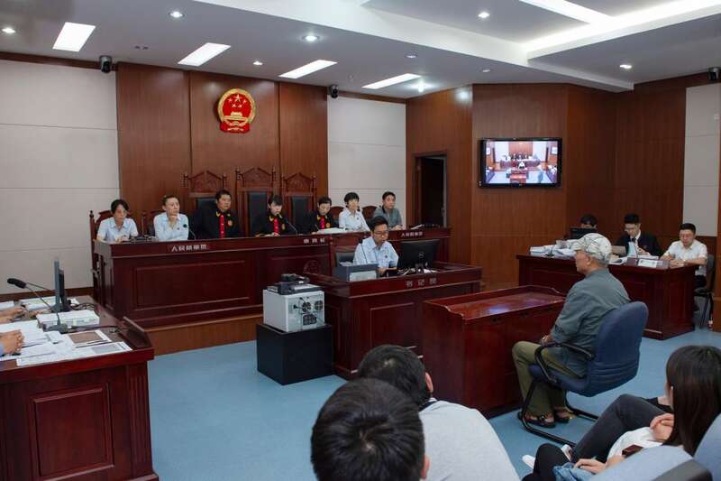 云南绿孔雀案一审庭审现场。(昆明中院供图)