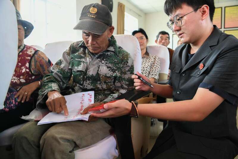 2022年3月28日,因大象遭受损失的农户正在领赔偿款。(思茅区法院供图)
