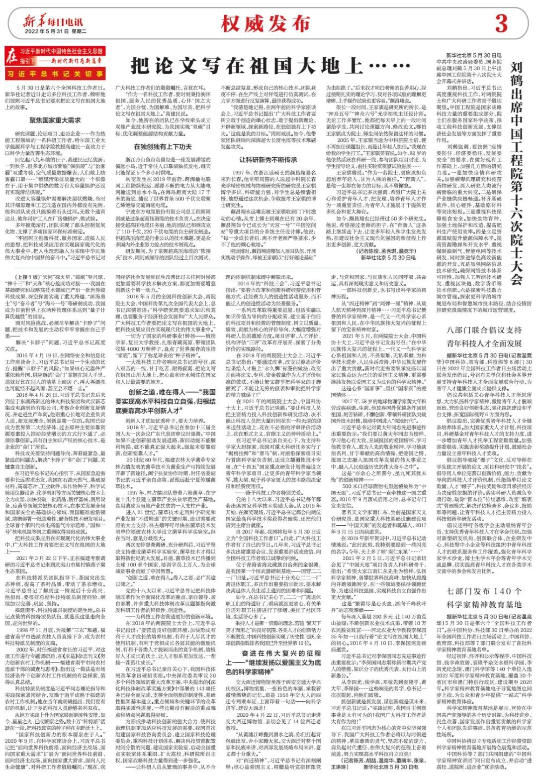 “作为一名科技工作者,要时刻秉持胸怀祖国、服务人民的优秀品质,心怀‘国之大者’,为国分忧、为国解难、为国尽责,把科学论文写在祖国大地上。”高建民说。