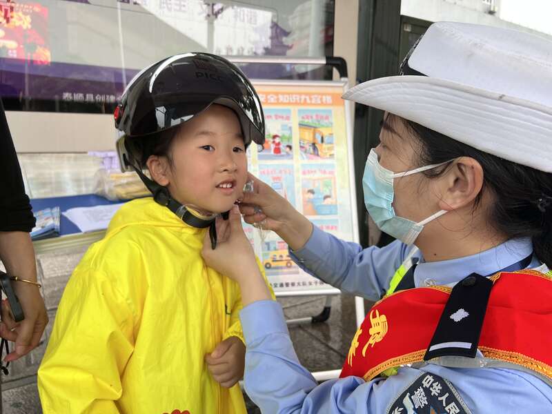中国青年报客户端讯(中青报•中青网记者 李剑平)“六一”国际儿童节之际,浙江省部分山区县市的孩子,以学习交通安全知识,践行绿色低碳环保和爱心帮扶等多种活动形式,度过了一个有意义的节日。在温州市泰顺县山区,县交警大队女子骑行中队的交警“大姐姐”们,向家长及孩子们耐心讲解佩戴安全头盔的重要性。孩子们说,“我们戴上安全头盔可酷啦!”