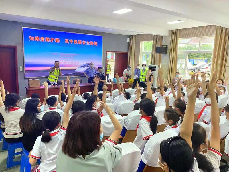 金华车务段缙云西站联合缙云县教育局、丽水铁路派出所、中铁大桥局集团有限公司,走进丽水市缙云县七里小学,开展安全主题教育活动。工作人员给同学们详细宣讲了“爱路护路十不要”小常识。
