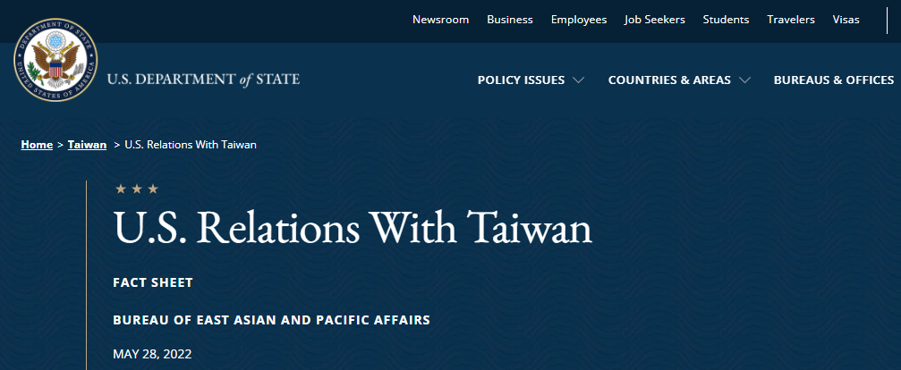美国国务院网站5月28日“悄然”更新“美台关系事实清单”