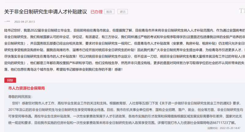 有地方对这一问题进行了回应。如青岛市人社局表示: