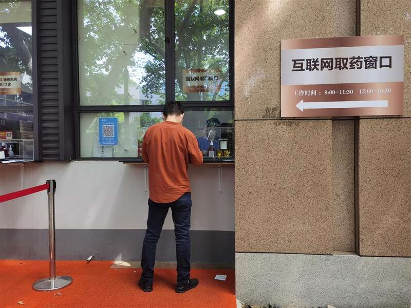 “无接触”取药效果如何?5月31日下午,记者前往了复旦大学附属眼耳鼻喉科医院汾阳院区实地查看。医院大门口,保安提示记者往西走50米,在门诊入院通道入口处旁就能看到互联网医院取药专窗。只见医院大楼围墙一处内凹处,墙上张贴着“互联网取药窗口”的指示牌,指向着窗户上开设的一扇可推拉活动窗口。下午2时许,窗口前人行道上,七八人正排着队等候扫码取药。记者观察发现,取药过程十分省事:从人行道走到窗口前,掏出手机调出二维码,在右侧的设备前扫一下,工作人员核对药品后从窗口递出,整个过程不足半分钟。