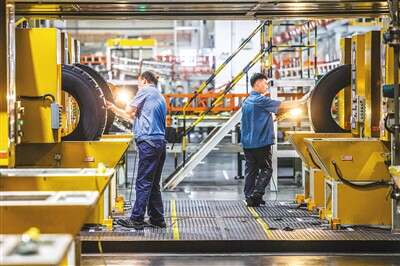 5月17日,工作人员在贵州轮胎股份有限公司“5G全连接工厂”的检验区内工作。