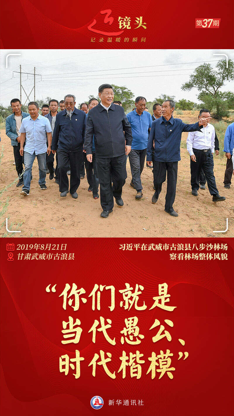 “你们几代人几十年的坚守很不容易。你们就是当代愚公、时代楷模,要向你们学习。”走进林场,看到昔日寸草不生的荒漠已是绿意点点,总书记无限感慨。