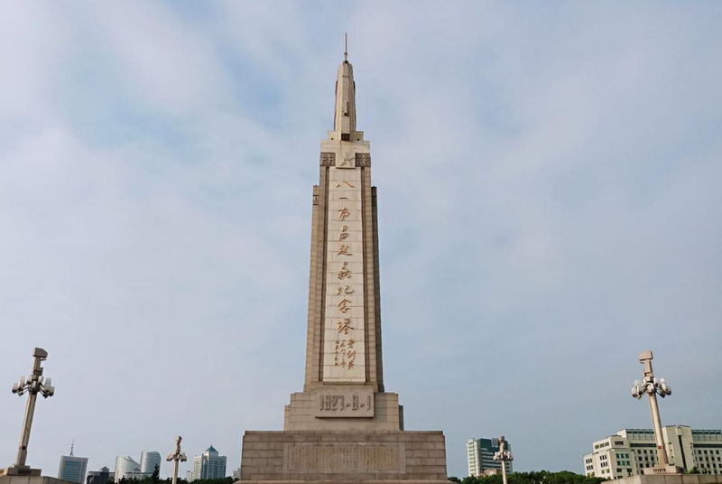 正面镌刻着叶剑英元帅题写的“八一南昌起义纪念塔”九个鎏金大字,塔身基座有27个台阶,意指一九二七年