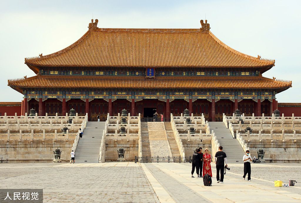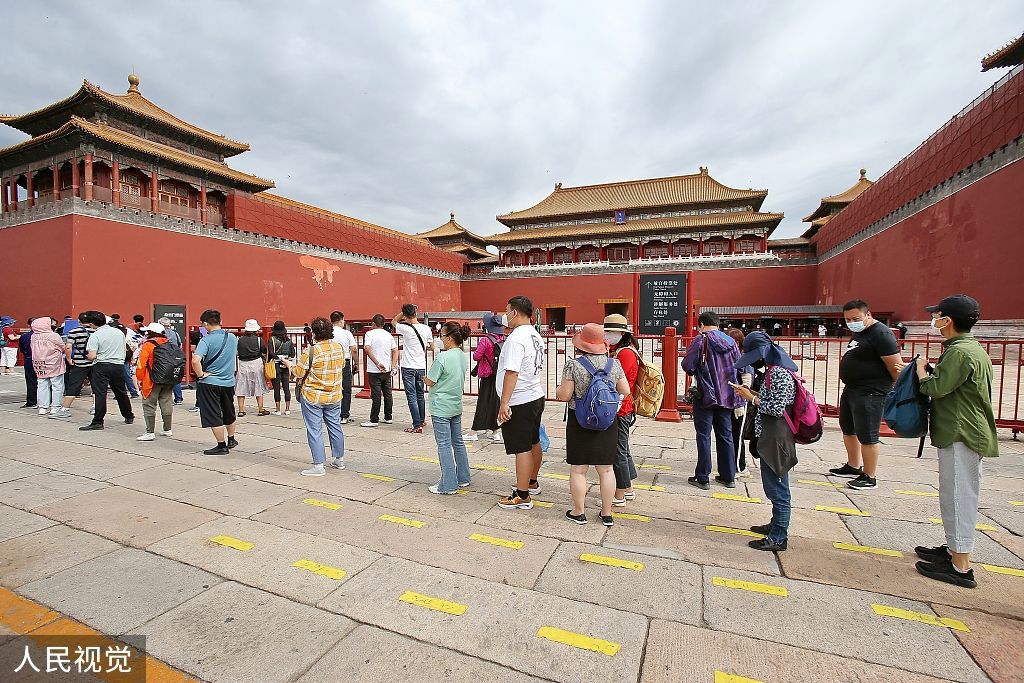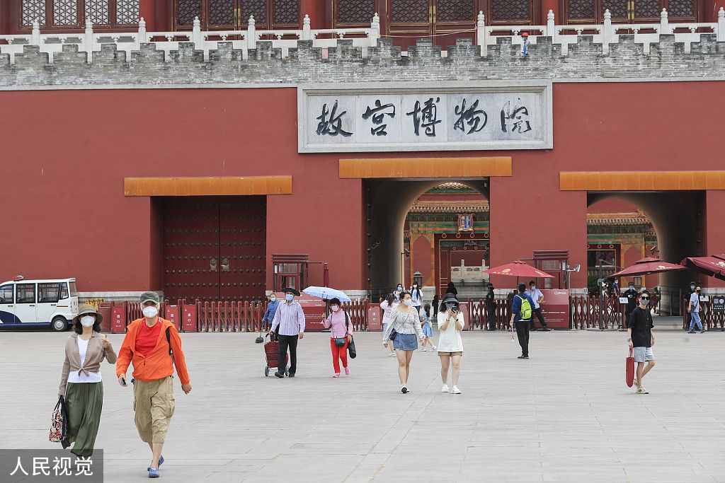 2022年6月7日,游客在北京故宫博物院游览。故宫博物院于6月7日起,按照75%限流要求恢复开放。 中新社记者 贾天勇 摄
