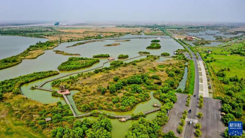 夏日的东营市黄河入海口湿地,绿草连天、百鸟翔集。