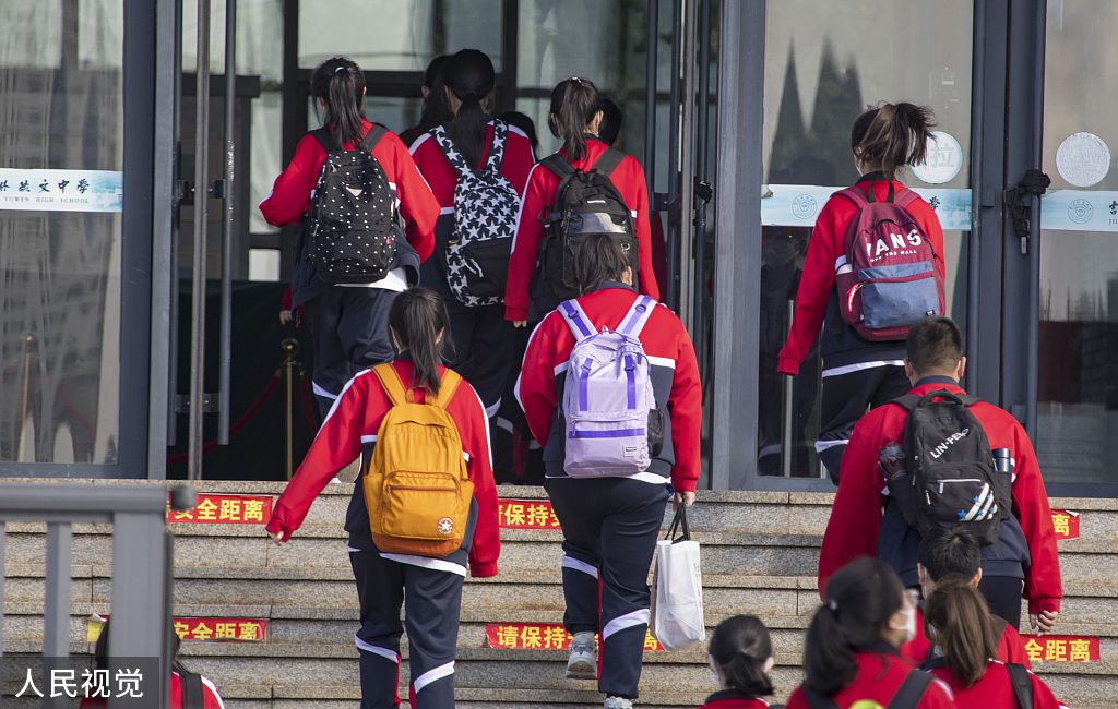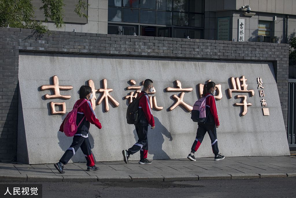 2022年6月10日,吉林,毓文中学高二学生重新穿上校服,背上书包,走进久违了的校园。