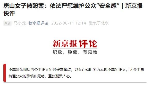 红星新闻评论指出:“如果不严惩不法分子,如果这些狂徒逍遥法外,公众的安全感将大打折扣。”工人日报评论也明确表示:“在众目睽睽、灯火通明、人来人往的环境下,当暴力的拳头落下、猖狂的叫嚣响起,不仅是本应得到尊重和保护的女性权益受损,更为普遍的民众的安全感也被击碎”。
