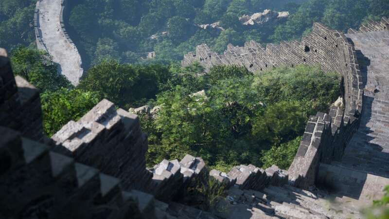 据介绍,PCG生成技术除了处理多达10亿面片的长城墙体扫描资产,还在周围山体“种植”了超过20万颗树,用户可以 “一镜到底”看到非常完整的自然环境。