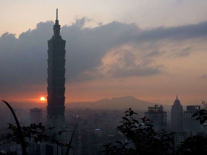 夕阳映照下的台北101大楼。新华社记者 陶明 摄