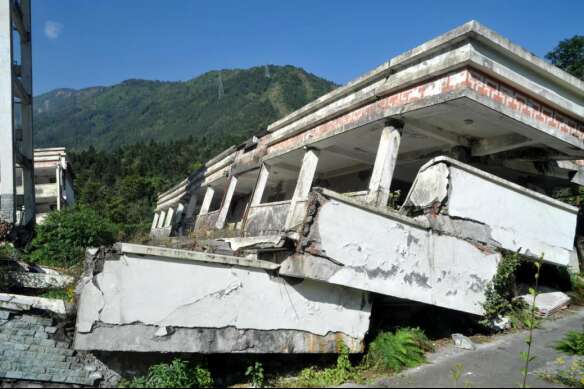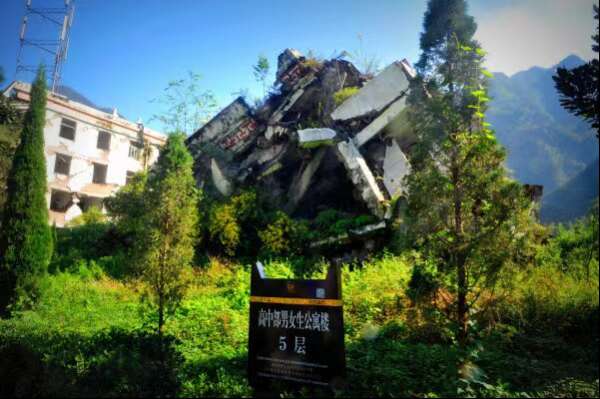 地震遗址漩口中学教学楼5楼变为了1楼