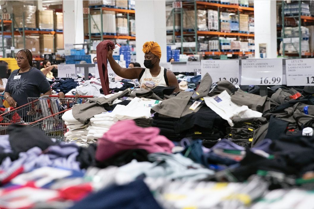 6月10日,美国纽约,人们在超市里选购服装。美国劳工部当天发布的数据显示,该国5月消费者价格指数(CPI)同比上涨8.6%。这是继今年3月之后,美国CPI涨幅再度刷新40年来的最高值。