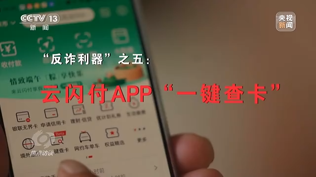 中国银联股份有限公司业务部副总经理 翁泉:很多犯罪分子利用或者冒用他人银行卡来做犯罪资金转移,针对这个情况,我们在云闪付App里推出了一键查卡服务,公众能够便利地查询到名下的银行卡,如果不用的银行卡(睡眠卡),建议大家及时去做注销。