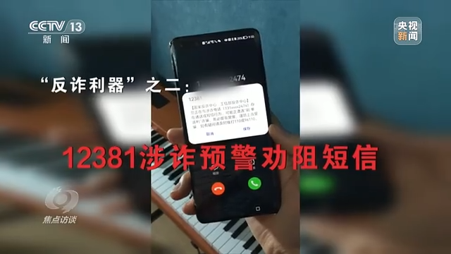 小力:12381这个短信(闪信霸屏),就是一个比较超前的预警作用,诈骗电话来的时候,它先提醒我这个电话是涉嫌诈骗,让我谨慎小心。要操作了这个短信,才能接这个电话。
