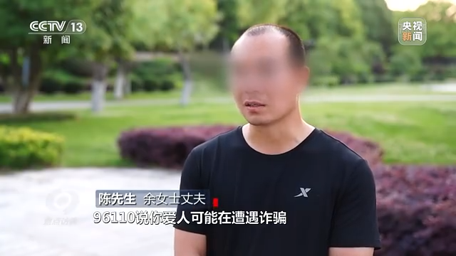 余女士丈夫 陈先生:96110说你爱人可能在遭遇诈骗,你在不在她的身边,如果不在的话尽快找到她。