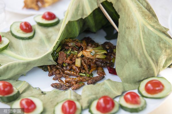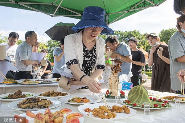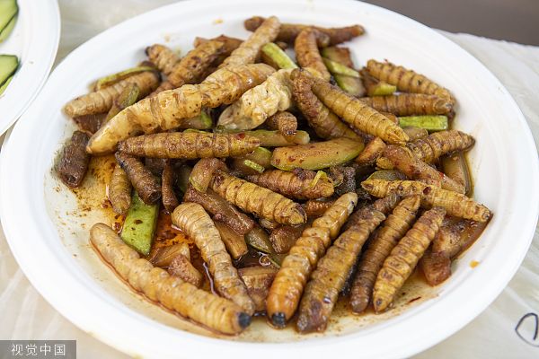 2022年6月21日下午,武汉,一场“昆虫宴”在华中农业大学举办,烧烤蝗虫、凉拌蚂蚁卵、爆炒竹象幼虫、油炸天牛幼虫、柠檬面包虫、蚕蛹寿司……一道道由学生烹饪的昆虫美食,引来师生争相尝鲜,不少菜品在短时间内被一扫而光。该校植物科学技术学院副教授周兴苗介绍,昆虫具有丰富的蛋白质、维生素和微量元素,和螃蟹、龙虾一样具有很好的食用价值。学校已连续多年举办“昆虫宴”,希望借此增加社会对昆虫的认识和了解,打破对昆虫的固有偏见,促进昆虫食用价值的开发。