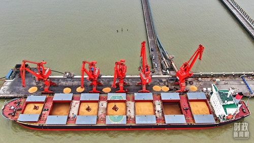 △2022年5月,巴西货轮运载54000吨大豆抵达江苏南通。(图/视觉中国)