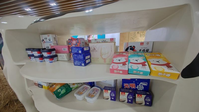 在这里,既有上海人熟悉的光明冰砖、三色杯等经典款,也有不少具备创新元素的新品。“上海市民对于光明老牌子有着自小就有的情感,光明冰砖等经典款经久不衰。消费市场需求多变,在过往产品的基础上,需要结合自身的品牌定位以及资源持续创新研发。激烈的外部竞争也倒逼我们打破条条框框,生产更加贴近消费者的产品,让老品牌持续焕新。”光明冷饮市场部杨紫琼说。
