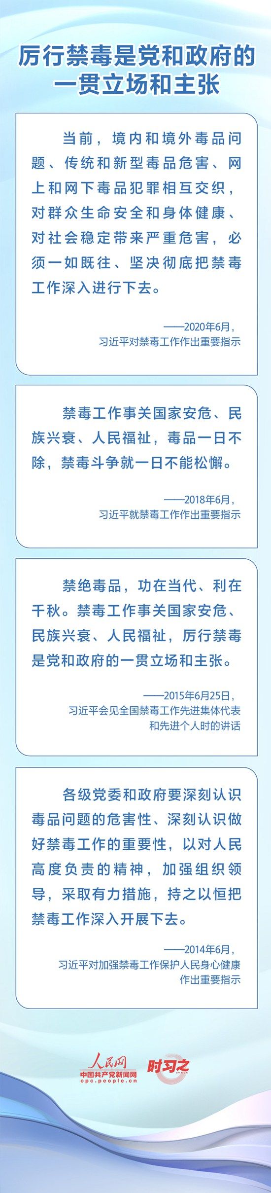 6月26日是国际禁毒日。毒品是人类社会的公害,禁毒工作事关国家安危、民族兴衰、人民福祉。党的十八大以来,习近平总书记多次就禁毒工作发表重要讲话、作出重要指示。让我们一起从总书记的重要论述里坚定打赢禁毒人民战争的信心,提升防毒禁毒意识,远离毒品。
