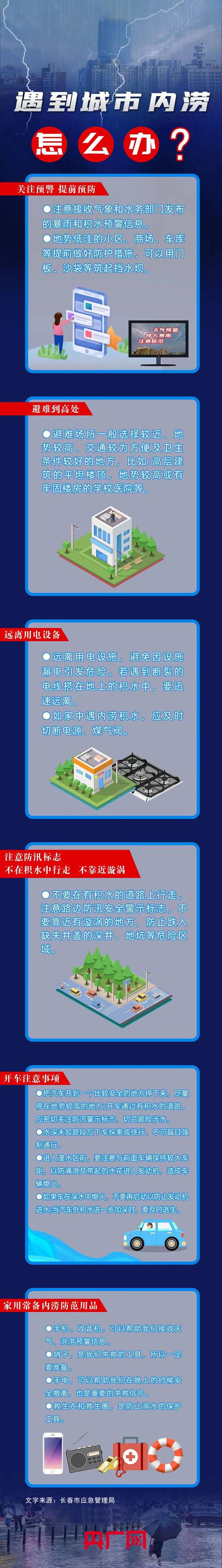 央广网长春6月29日消息(记者苏高格)城市内涝是指由于强降水或连续性降水超过城市排水能力致使城市内产生积水灾害的现象。造成内涝的客观原因是降雨强度大,范围集中。降雨特别急的地方可能形成积水,降雨强度比较大、时间比较长也有可能形成积水。万一遇到城市内涝积水该怎么办?以下知识要记好!