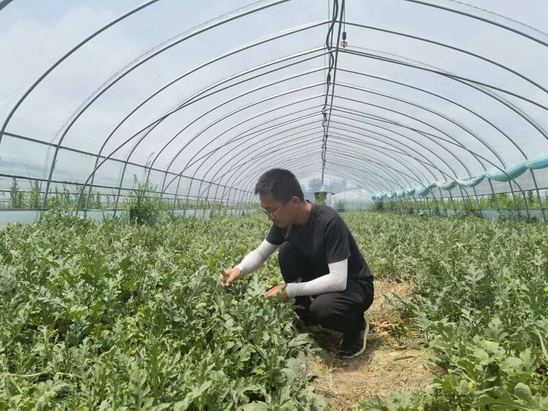 2020年2月,汪磊来到青创农场工作,每天花十个小时在大棚里实干。眼下他已经负责49个西瓜大棚的技术指导,成为农场里的产业带头人。