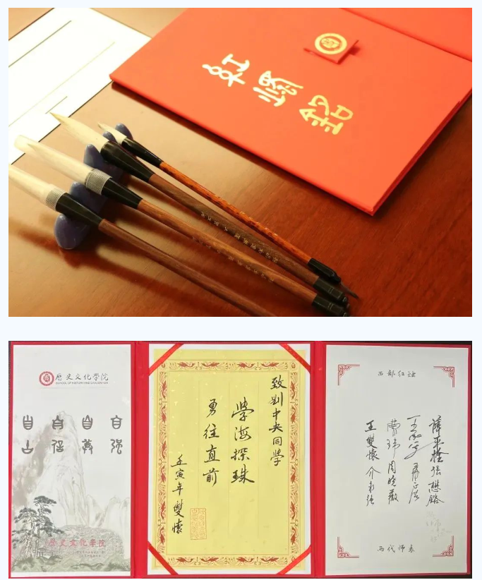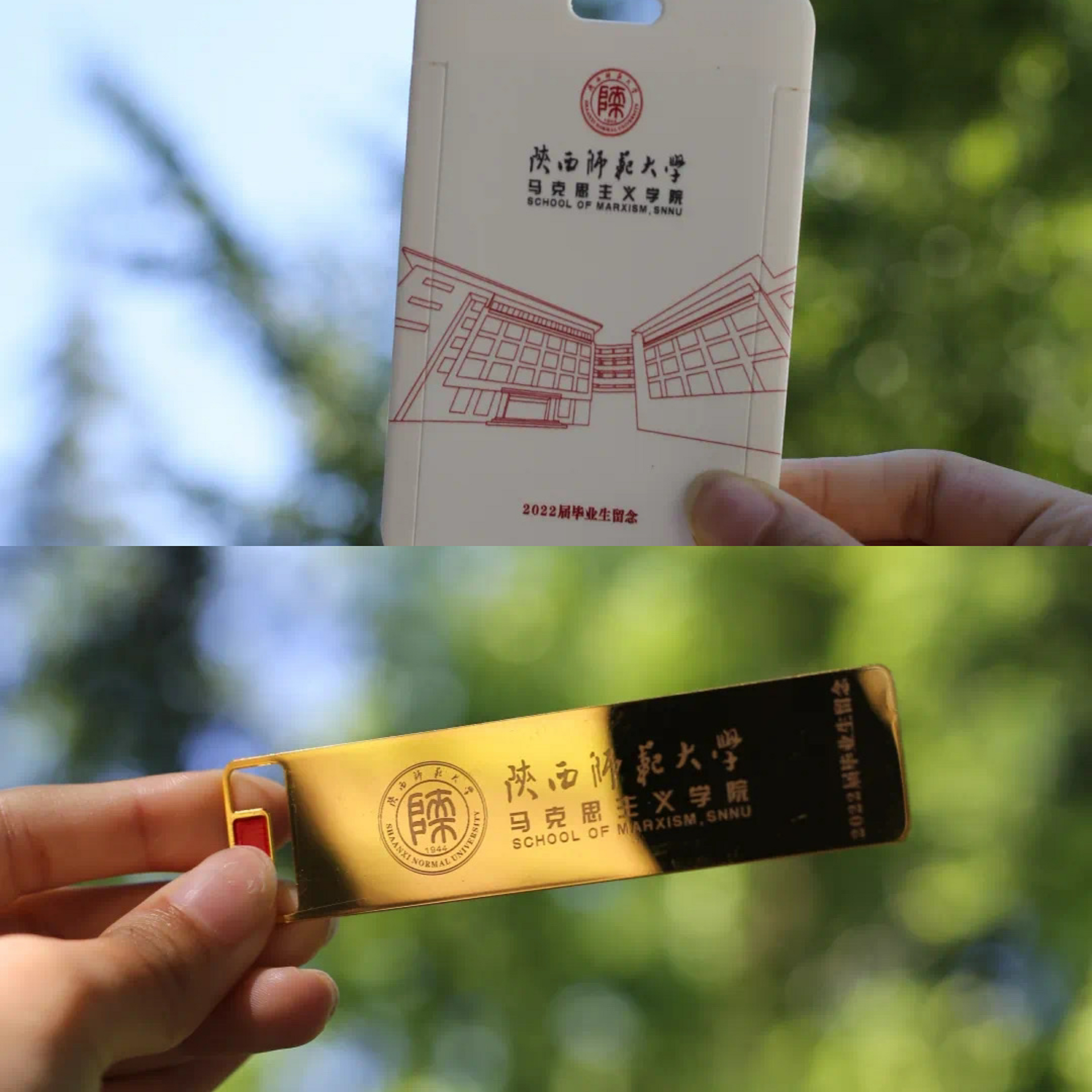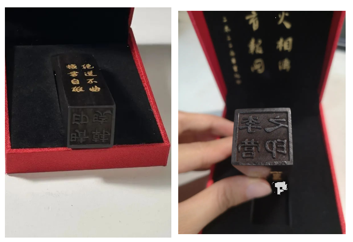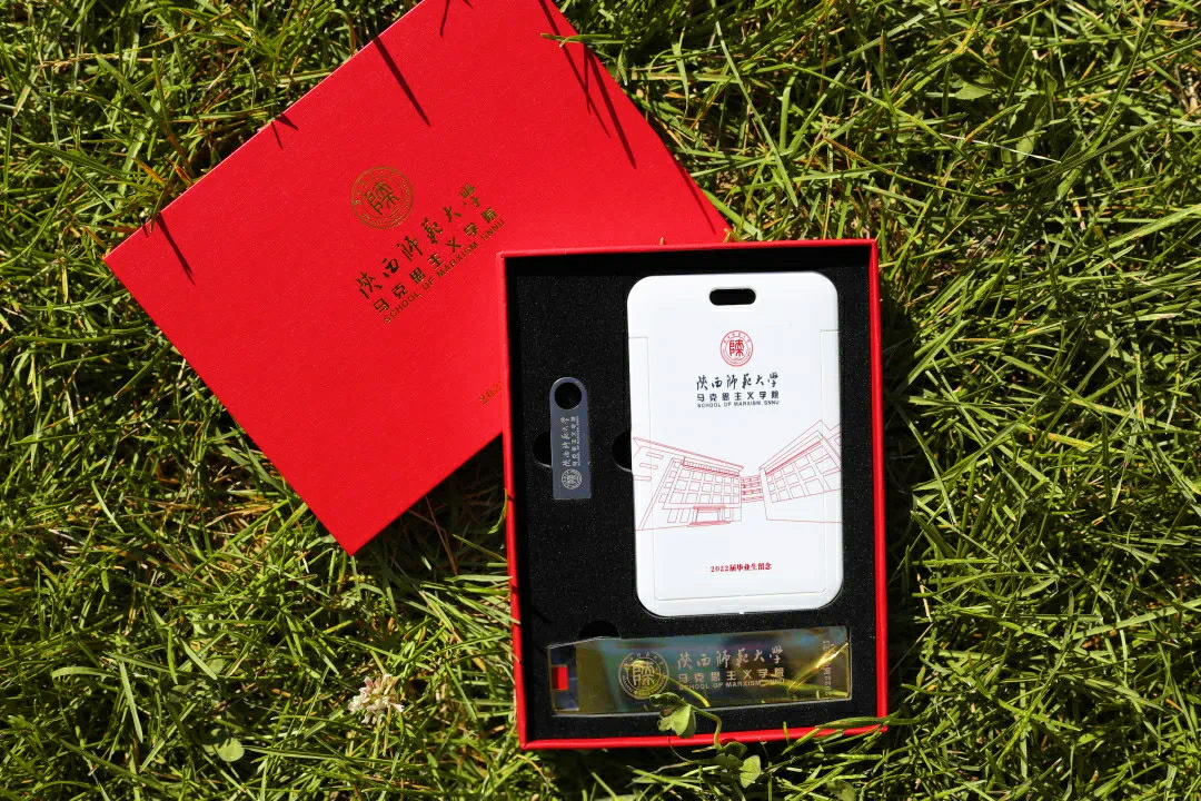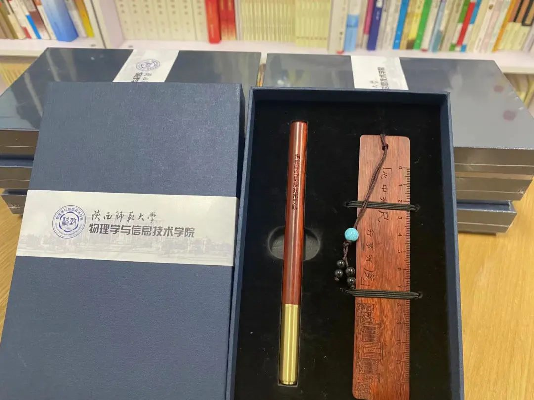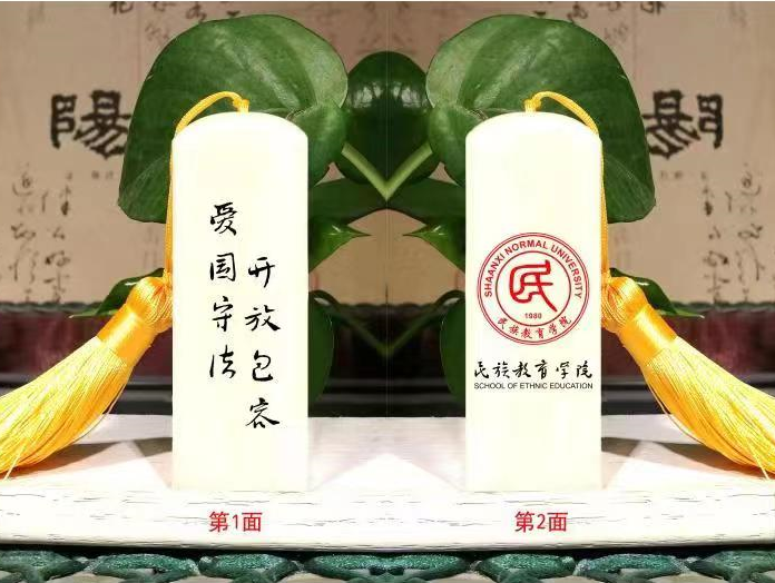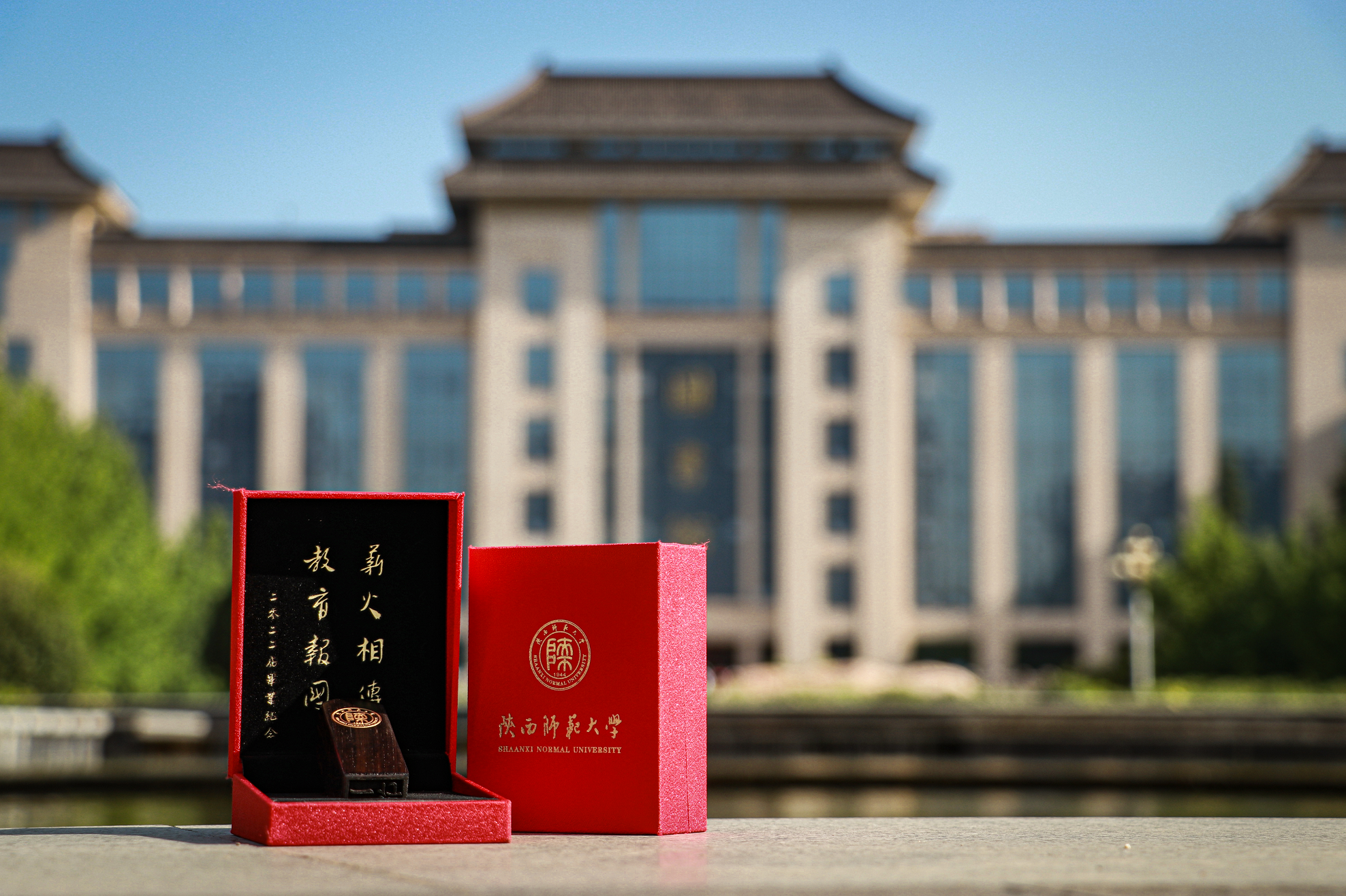 印章为紫光檀木材质,坚硬滑润,沉稳儒雅,与师大厚重的人文积淀相互映衬。印章侧面雕刻有学校校徽和学校书法家卫俊秀先生题写的“抱道不曲、拥书自雄”字样,意在传承师大优良学风。印章红底金字的包装盒内,印有“薪火相传、教育报国”的寄语,饱含弘扬“西部红烛两代师表精神”的谆谆嘱托。印章底部以隶书字体刻有毕业生姓名,每一次用印都是师大学子与母校的深沉交流和互动。