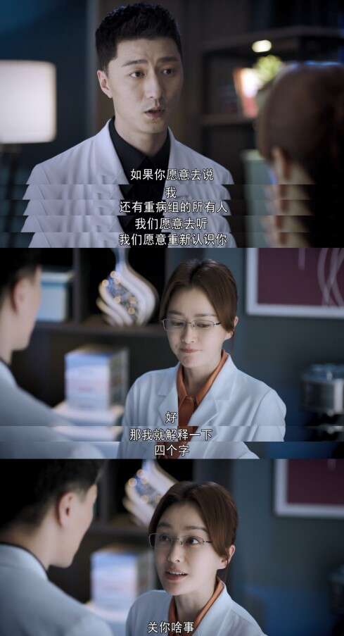组里的同事听信谣言,老在背后嘀咕“副院长的前女友成了科室的头儿,还有没有人管了”,他们联合起来给唐佳瑜使绊子,立即提出转组申请。但他们显然低估了唐佳瑜的战斗力,她直截了当告诉他们:“你们的转组申请我收到了,只要我还在安和一天,谁也别想离开这个医疗组。等我开始正式工作的时候,你们会有更多理由不喜欢我。”