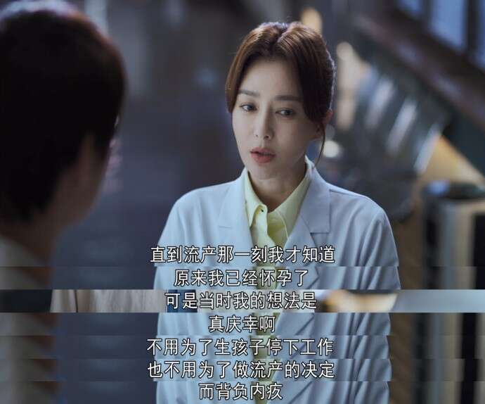 读者可以在这里暂停一下。如果你是编剧,你会如何描写唐佳瑜流产那一刻的感想。《唐医生》给了我们一个绝对出乎意料、但又在情理之中,并且独属于唐佳瑜的答案。唐佳瑜当时松了一口气:“真庆幸啊。不用为了生孩子停下工作,也不用为了流产做决定而背负内疚。”