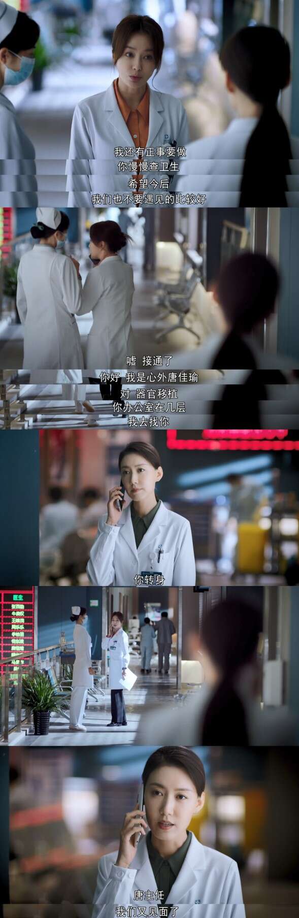 随即,唐佳瑜着急给医院的器官协调员打电话——她的一个病人等待器官移植,她头也不回走了。电话接通后,电话那头声音说“请转身”——bingo,还是欧阳真予,火花从这一刻开始点燃。