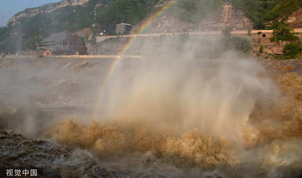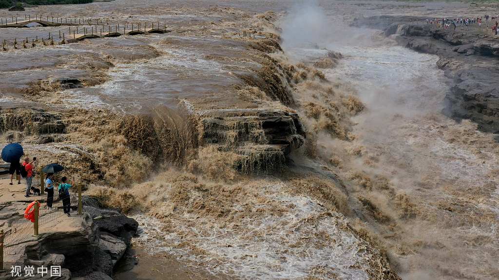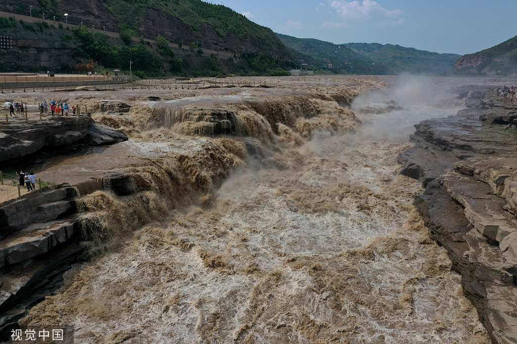 2022年7月4日,山西临汾,吉县奔腾咆哮的黄河壶口瀑布。