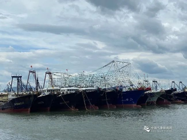 ▲图为7月1日,茂名市电白博贺港渔船收到台风预警信息后,加强在港渔船的安全防范,有序在港避风。
