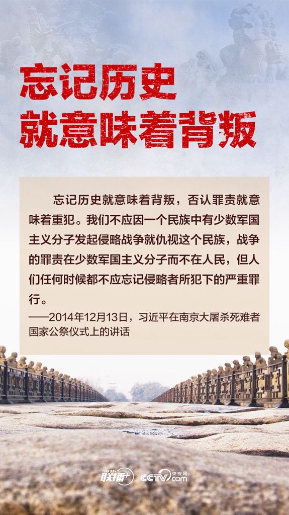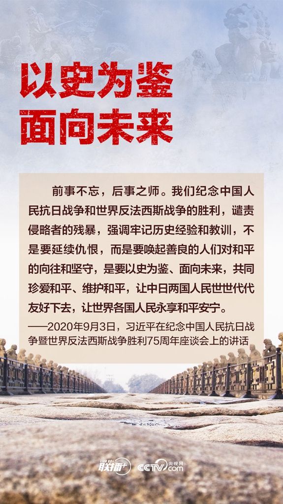 历史无法重来,未来可以开创。在全民族抗战爆发85周年之际,央视网《联播+》特撷取习近平总书记关于坚决反击美化侵略战争的重要论述,邀您一起学习领悟。