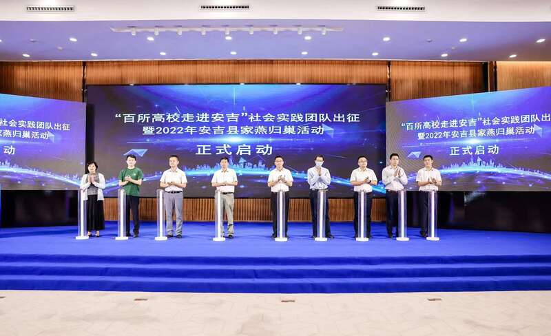 7月6日上午,浙江安吉举行“百所高校走进安吉”社会实践团队出征暨2022年安吉县家燕归巢启动仪式。