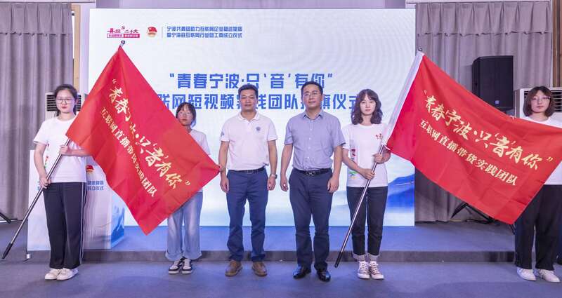 “青春宁波 只‘音’有你”互联网直播带货实践团队授旗仪式。共青团宁波市委员会供图
