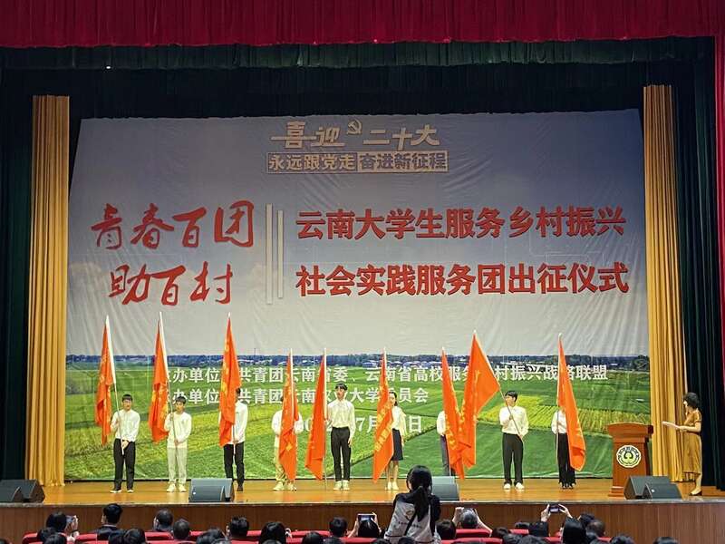 中国青年报客户端讯(中青报·中青网记者 张文凌)7月10日,由共青团云南省委、云南省高校服务乡村振兴战略联盟共同开展的“青春百团助百村”云南大学生服务乡村振兴社会实践专项活动出征仪式。全省42所高校 3760名学生组成的241支团队,将深入211个村开展服务乡村振兴社会实践专项活动。
