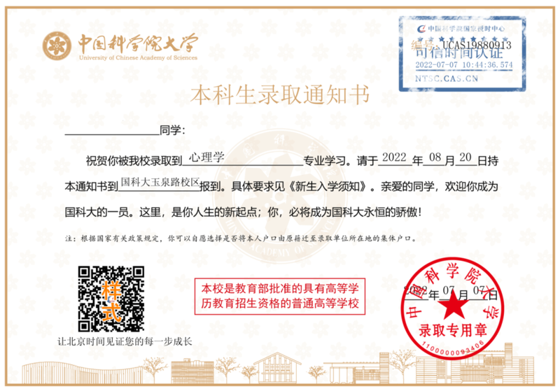 国科大2022年首批本科生录取通知书发出。国科大供图