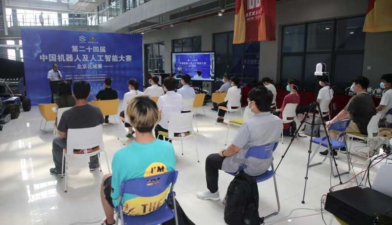 第24届大赛组委会主席、中国人工智能学会机器人文化艺术专业委员会主任朴松昊,第24届大赛组委会派驻北京赛区仲裁委员、中国人工智能学会机器人文化艺术专业委员会常务委员王险峰,北京赛区组委会主任黄彪等线上出席开幕式。北京理工大学机械与车辆学院常务副院长宫琳,教务部副部长陈浩,学生创新创业实践中心主任车辉泉和徐特立学院副院长赵昊等线下出席开幕式,开幕式由北京理工大学地面机动装备国家级实验教学示范中心副主任李忠新主持。