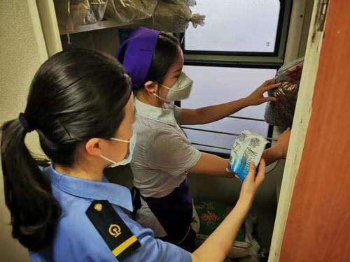 车队在列车上还向旅客公布24小时举报电话,发现食品异味随时监督。车长和添乘干部现场检查上货料单,决不允许有毒、有害及“三无”食品流入到旅客餐车上。同时,受疫情的影响,车队对餐服人员健康证、行程码、健康码、体温测量结果以及48小时内核酸检测结果进行检查,全程视频录制留存备查,确保食品操作、销售人员健康可控。每趟车剩余饭菜及时处理和销毁,垃圾及时交站处理。对餐车剩余食用油,餐车主任和接班的班组,认真交接签字。