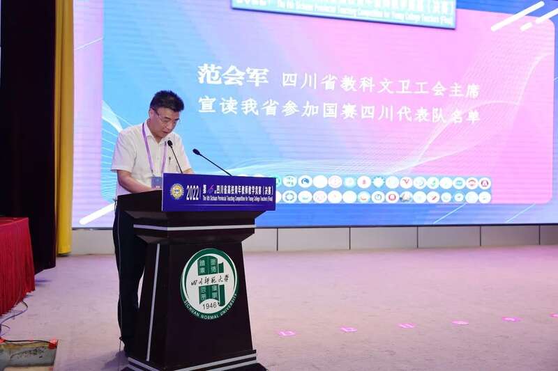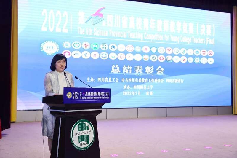为深入学习贯彻习近平总书记来川视察重要指示和省第十二次党代会精神,加强师德师风建设,培养高素质青年教师队伍,提高高校教育教学质量,助推高等教育内涵式发展,喜迎党的二十大胜利召开,7月4日至6日,四川省第六届高校青年教师教学竞赛决赛在四川师范大学举行。本次大赛由四川省总工会、中共四川省委教育工作委员会、四川省教育厅主办,四川师范大学承办,经过校级选拔、省级预赛,最终从2万多名选手决出93名教师参加省级决赛。